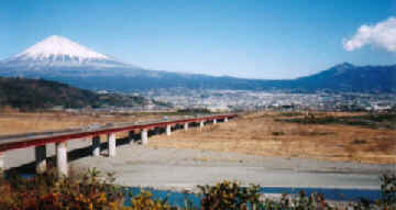 ![]() 東名高速から見た大山 (やや上流だが、ほぼ同じ角度。稜線の起伏に注目) |