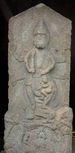 | 額のドクロ、ドクロの首飾り、猿や邪鬼の形など共通点。比較することで、大きなボールは「とぐろを巻いた蛇」であることが分かる。 | |