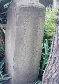 | D日枝神社 トンネル入口手前左手を廻るように登ると、トンネル入口の上に日枝神社がある。神社前の石垣の窪みに数体の石仏がある。 元禄6の青面金剛、宝永6年の片手サル庚申塔・・・など 国道一号に戻り、旧東海道を西に進む。車道より一段高い歩道には松並木があり、旧東海道の雰囲気が残っている。 すぐに一里塚旧跡▼がある。 |
