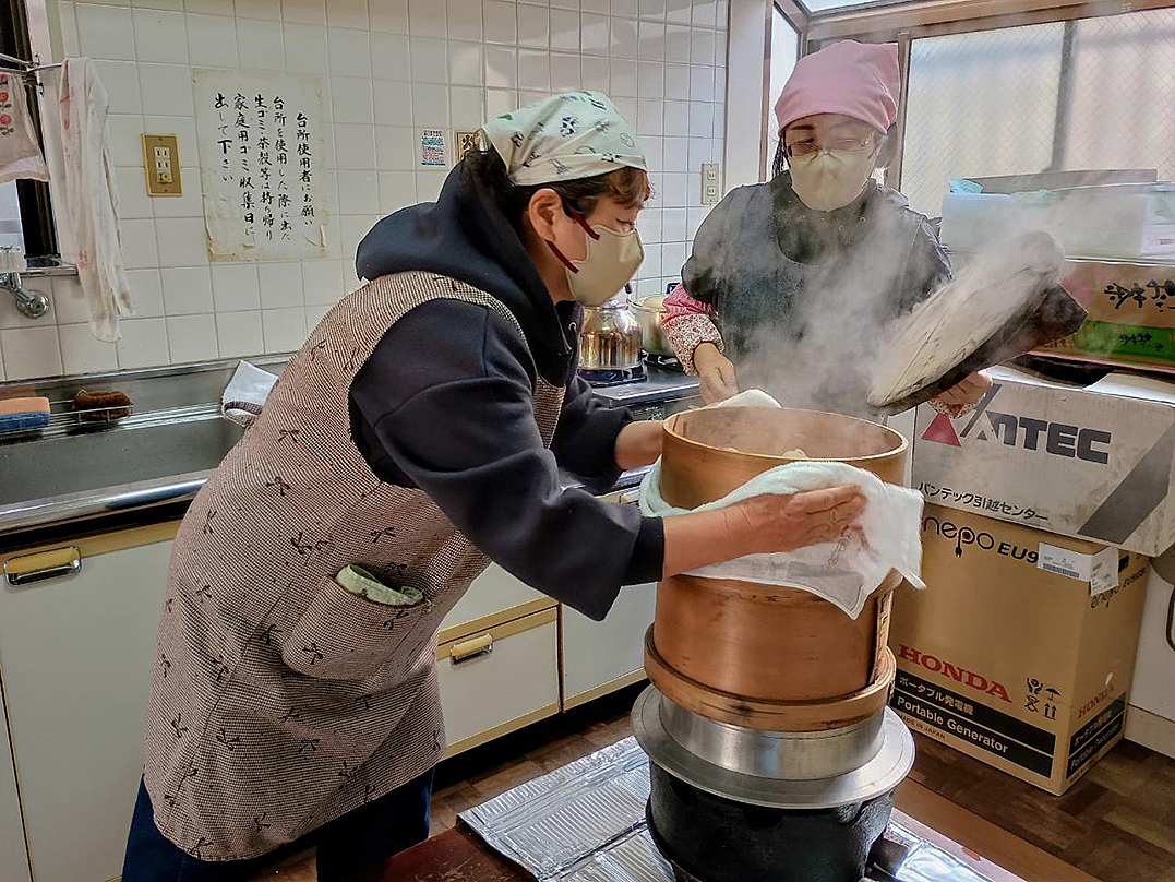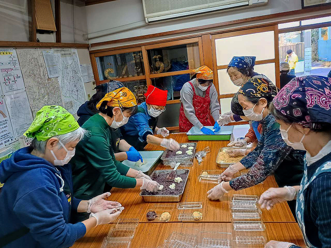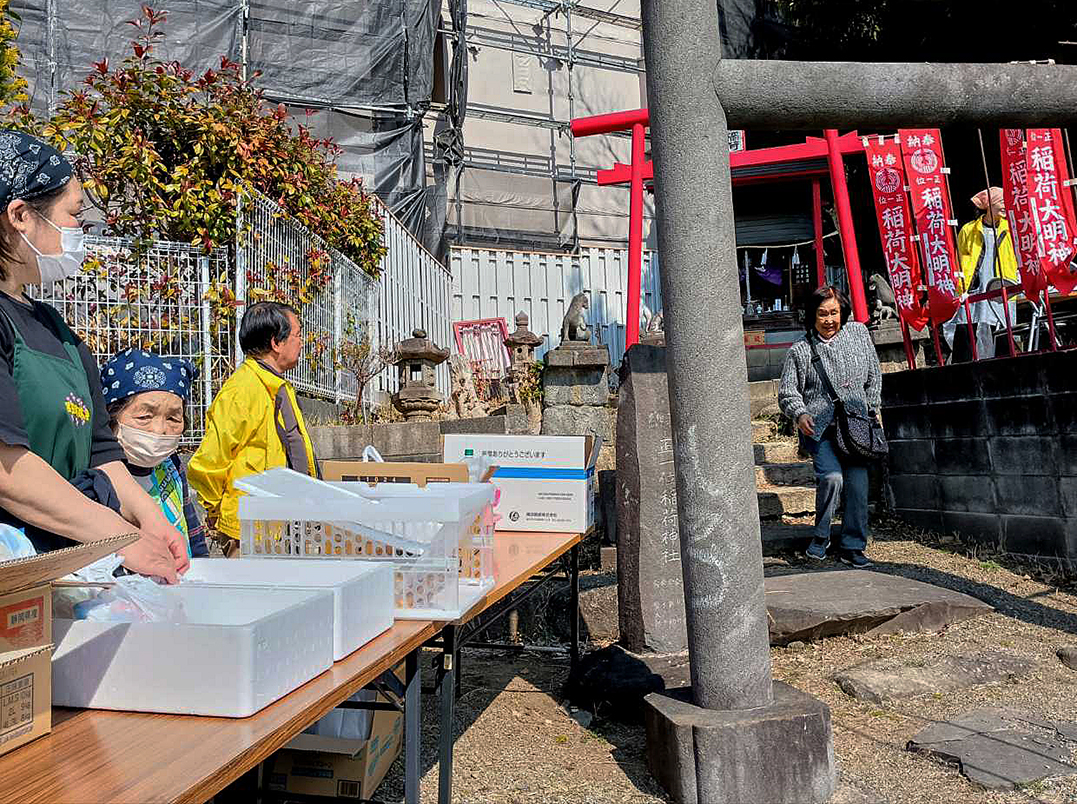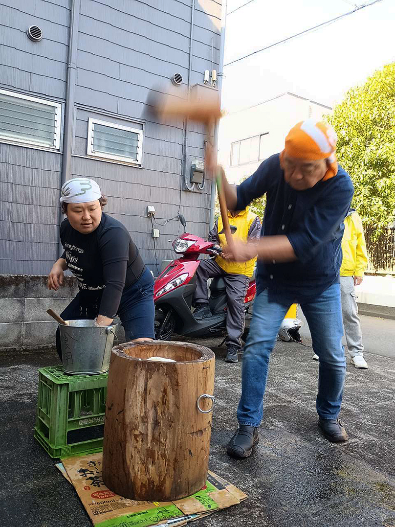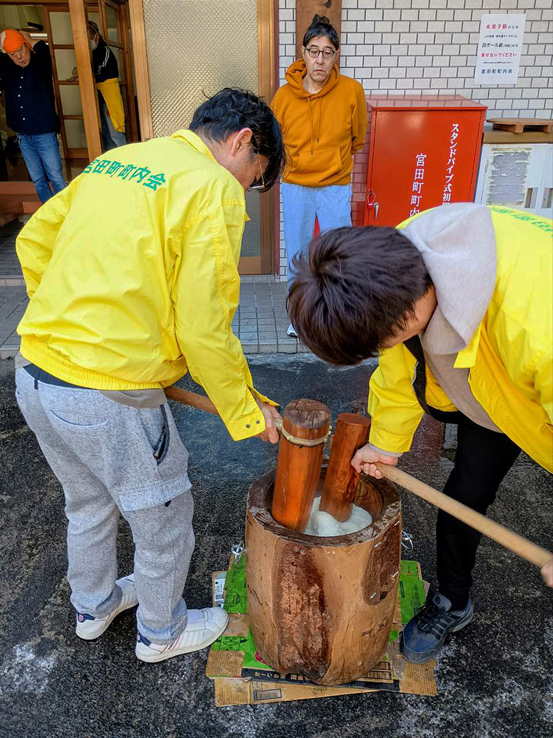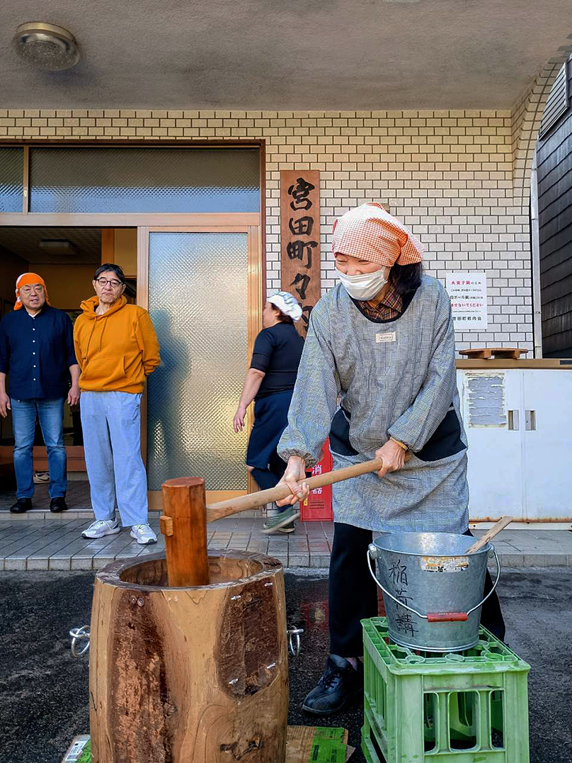 宮田稲荷では、参拝と接待を、第1会館では恒例の餅つきが行われました。