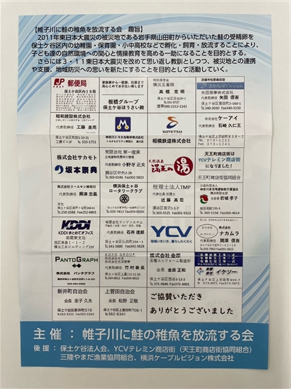 毎年開催される帷子川に鮭の稚魚を放流する会にほんの少しだけ協力させていただきました。