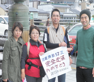 人目をはばからずに三条大橋の真ん中で抱き合いました。そして万歳。