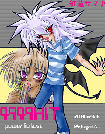 えへへー☆ かがりしゃんのサイトで4949HITを頂いちゃいましたvv で・『ばくらんを追っかけるマリたん』って事でリクしたのですが… 可愛いーーーーーーーーvvvvvvv やっ。バクらんに悪魔の羽ANDしっぽがっっ!!! そして『ちょっ・・・待ってよバクラ〜!』なマリたんvv はふんっvv(謎) ホント有難うございました〜〜vvv またキリバン、狙っちゃいますよ☆(をい) 紅蓮 ぎふとに戻る