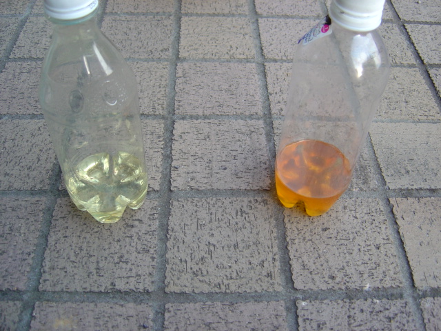 もう片方を廃フルード入れとしての空ペットボトルにぶっこみます。